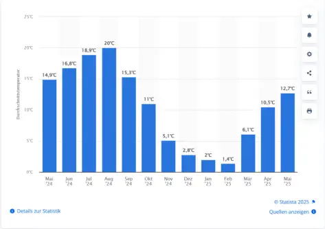 Monatlicher Niederschlag in Deutschland (in Liter pro m²)